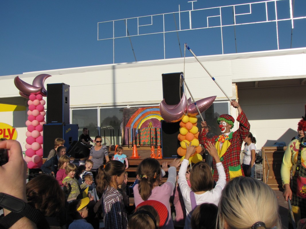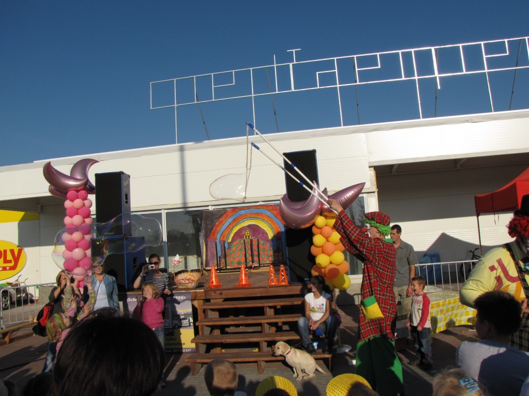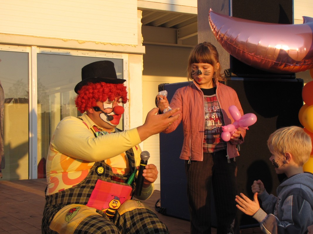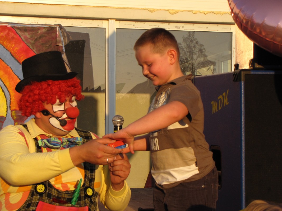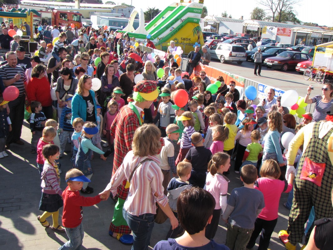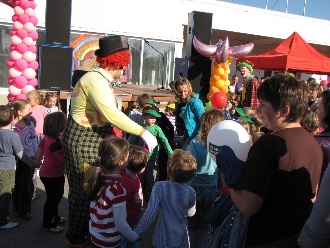 Festyn rozpoczął się koncertem pt. „A mnie jest wesoło” w wykonaniu Pani Uli Pakuły. Koncert był połączony ze wspólną zabawą dzieci i ich opiekunów z wykorzystywaniem wielu kolorowych rekwizytów. Po koncercie przyszedł czas na występ Klaunów Pufcia i Tofcia, którzy prowadzili blok z piosenkami oraz nauką tańców klaunowo biesiadnych. Poza tym odbyło się wiele konkursów dla dzieci i ich rodziców, w trakcie których klauni rozdali mnóstwo słodyczy i kolorowych zwierzątek zrobionych z balonów. Pokazali również jak się robi olbrzymie bańki mydlane.