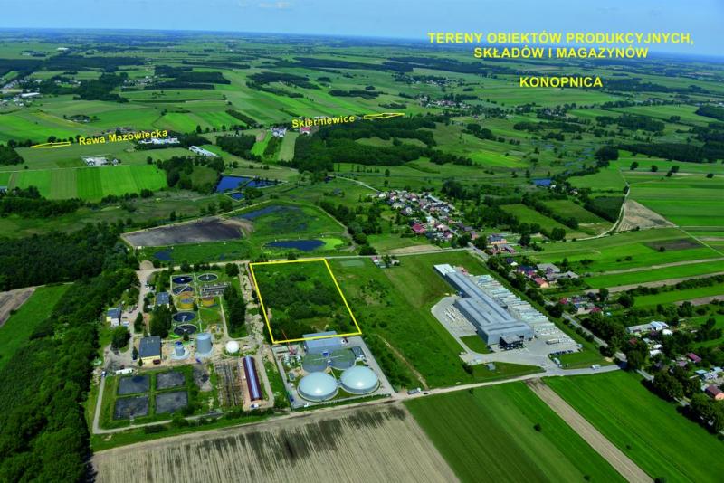 Nieruchomość oznaczona nr ewid. 780/2 o pow. 2,06 ha, położona w Konopnicy (Gmina Rawa Mazowiecka), przeznaczona w miejscowym planie zagospodarowania przestrzennego pod teren obiektów produkcyjnych, składów i magazynów z wyłączeniem produkcji spożywczej oraz artykułów kosmetyczno - higienicznych, z dopuszczeniem usług handlu hurtowego artykułami przemysłowymi z wyłączeniem handlu hurtowego i detalicznego produktami spożywczymi.