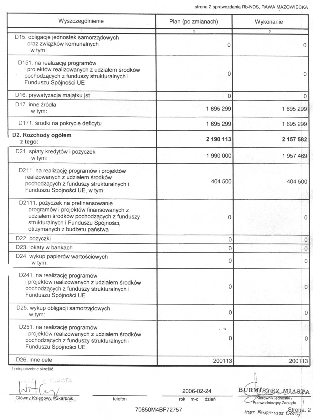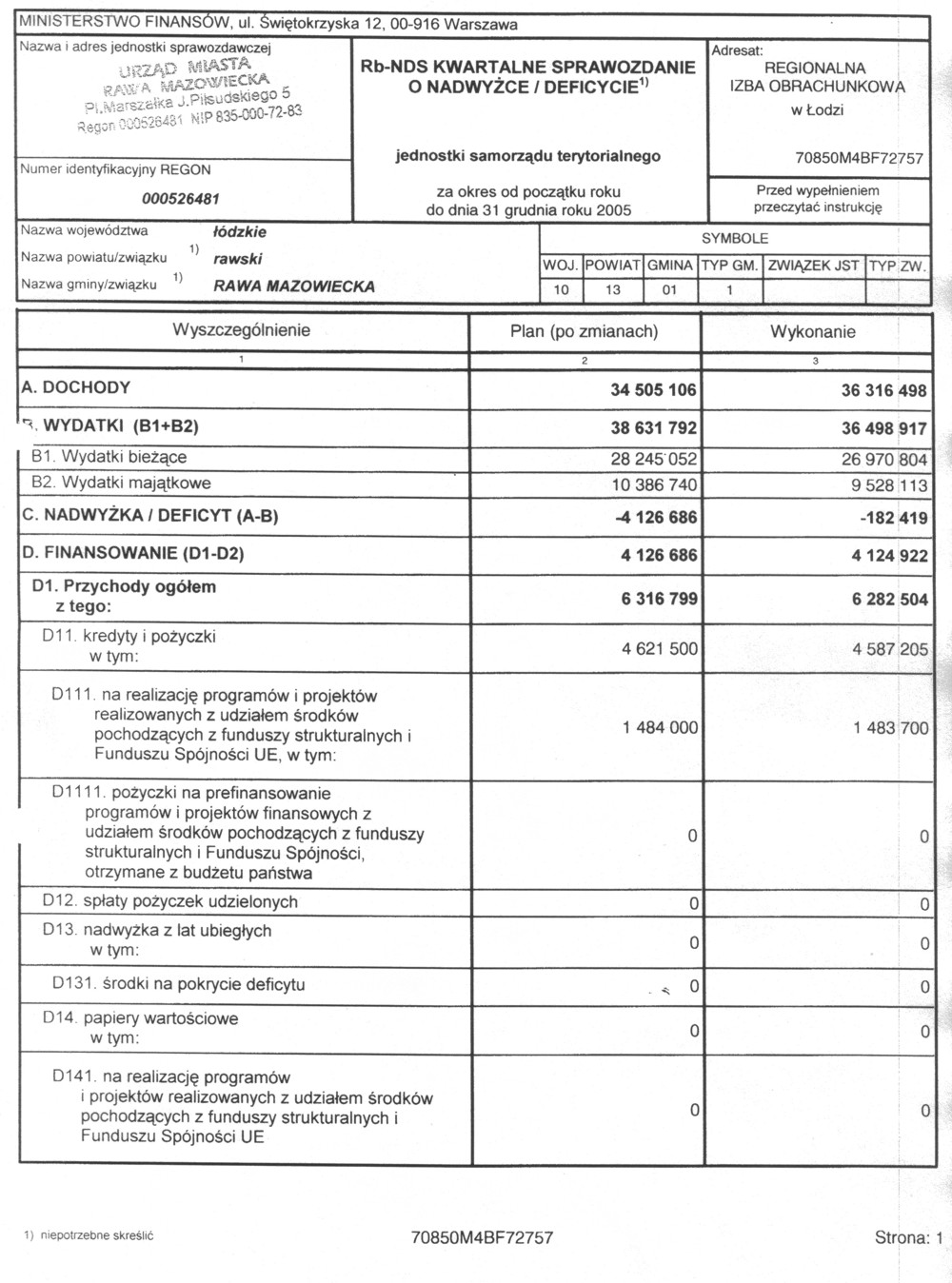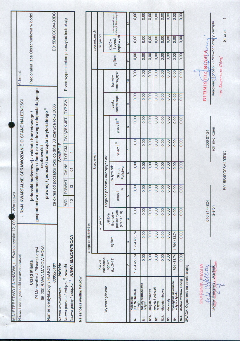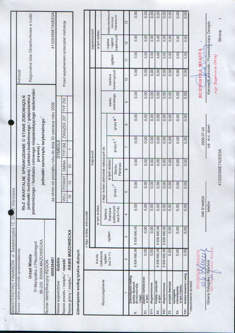 Informacja z wykonania budżetu Miasta Rawa Mazowiecka za I kwartał 2006 rok