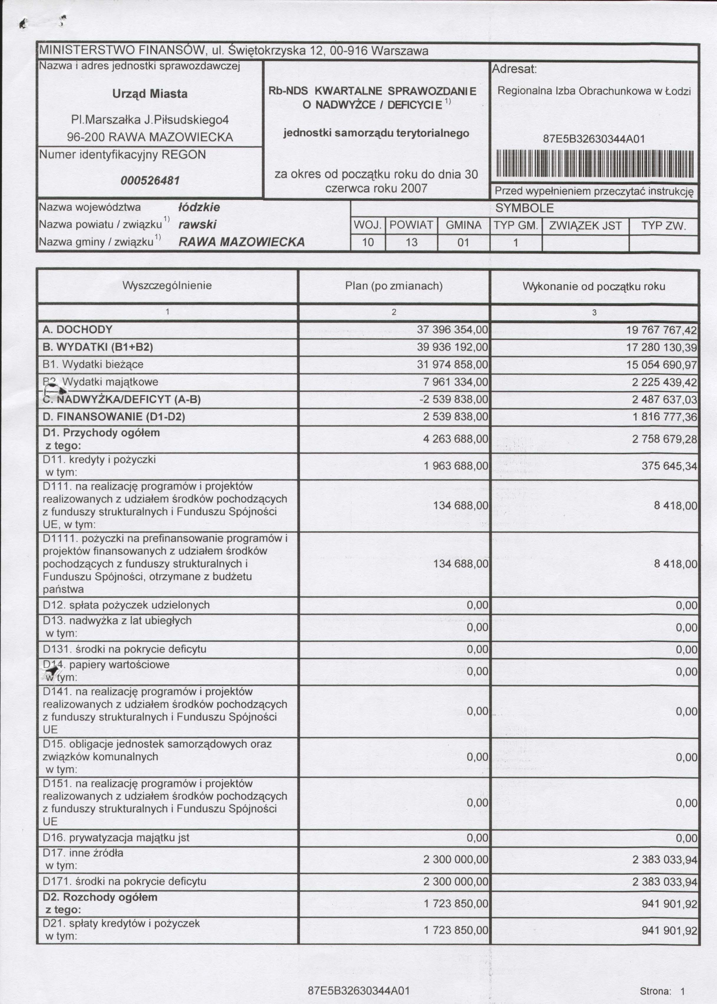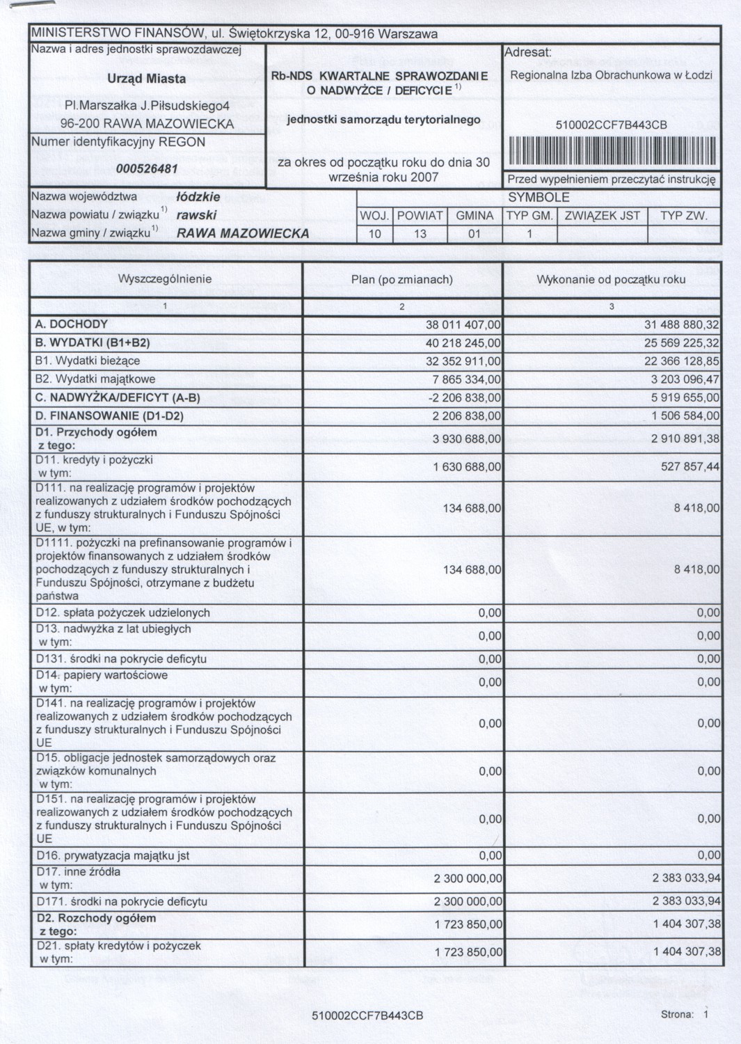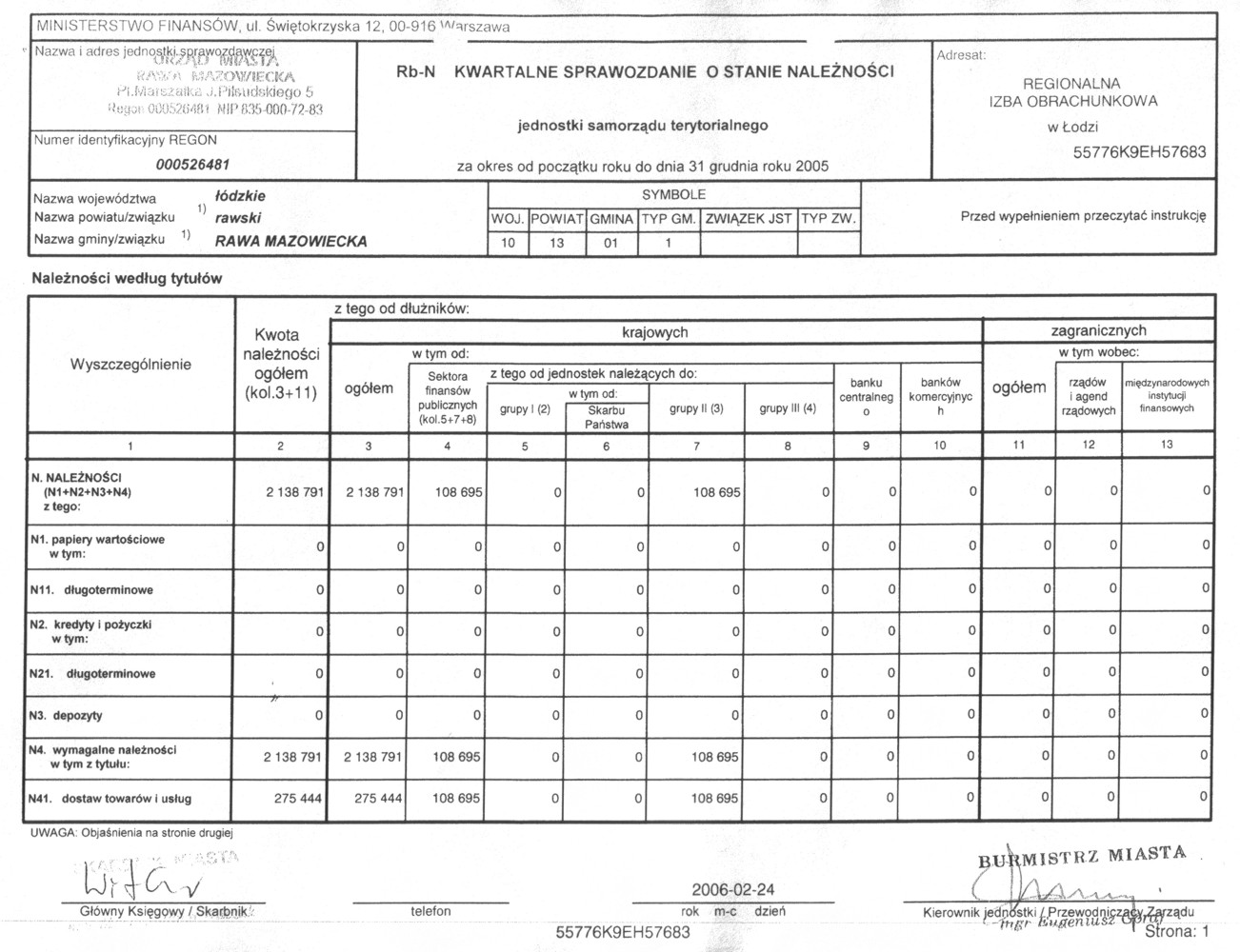 Informacja z wykonania budżetu Miasta Rawa Mazowiecka za I kwartał 2006 rok