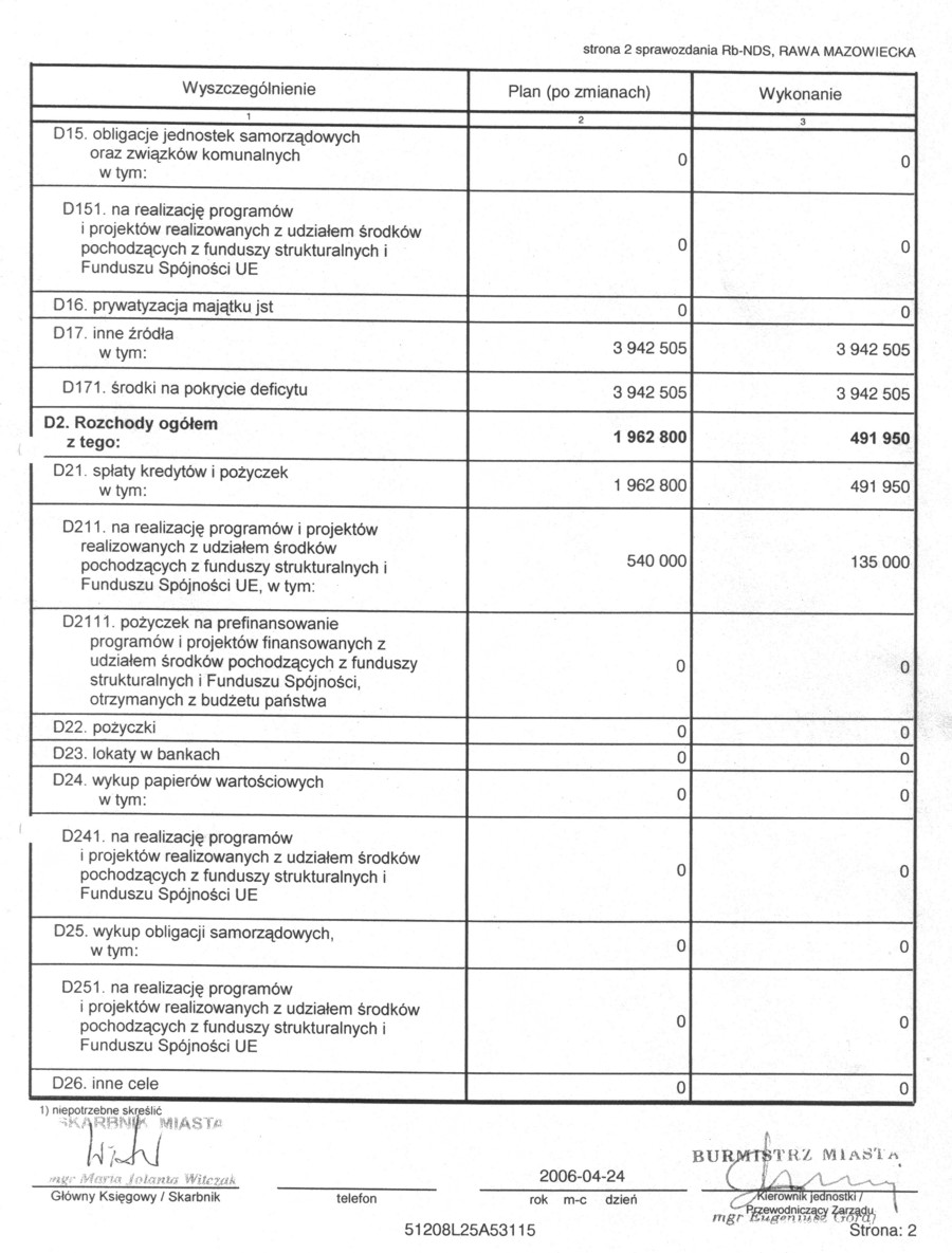 SPRAWOZDANIE NDS ZA I KWARTAŁ 2006 ROK