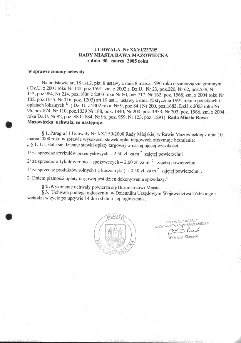 UCHWAŁA NR XXVI/237/05 z dnia 30 marca 2005 r. w sprawie zmiany uchwały