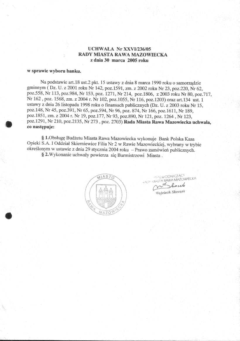UCHWAŁA NR XXVI/236/05 z dnia 30 marca 2005 r. w sprawie wyboru banku