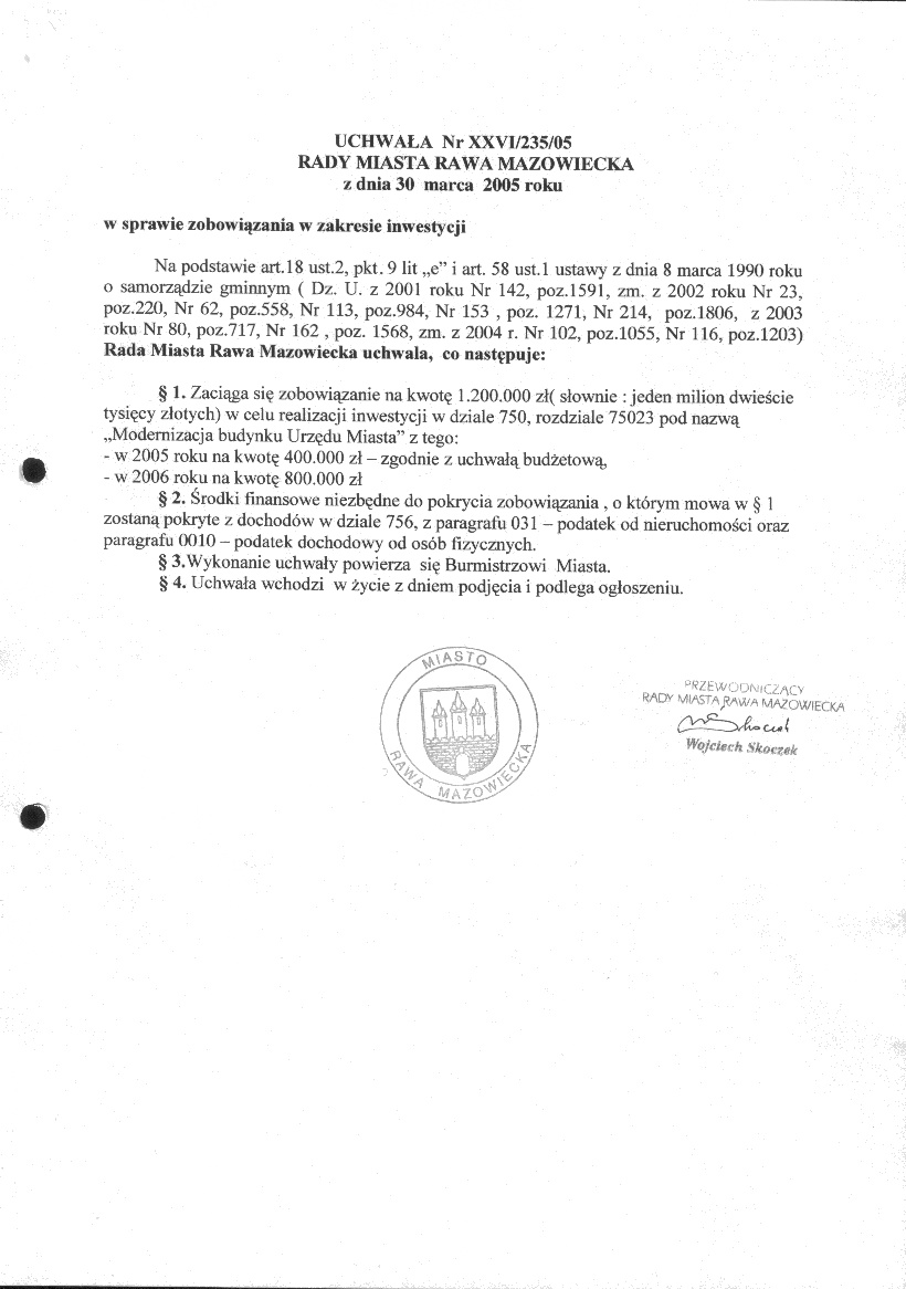 UCHWAŁA NR XXVI/235/05 z dnia 30 marca 2005 r. w sprawie zobowiązania w zakresie inwestycji