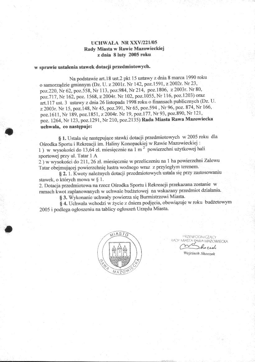 UCHWAŁA NR XXV/221/05 z dnia 8 luty 2005 r. w sprawie ustalenia stawek dotacji przedmiotowych