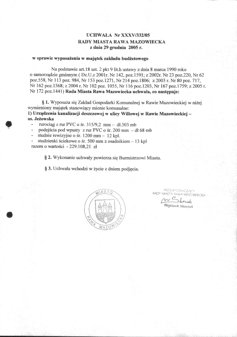 UCHWAŁA NR XXXV/332/05 z dnia 29 grudnia 2005r. w sprawie wyposażenia w majątek zakładu budżetowego