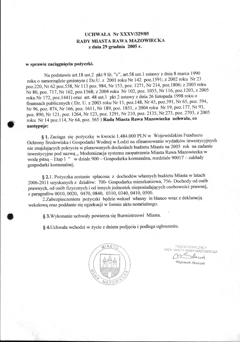 UCHWAŁA NR XXXV/329/05 z dnia 29 grudnia 2005r. w sprawie zaciągnięcia pożyczki