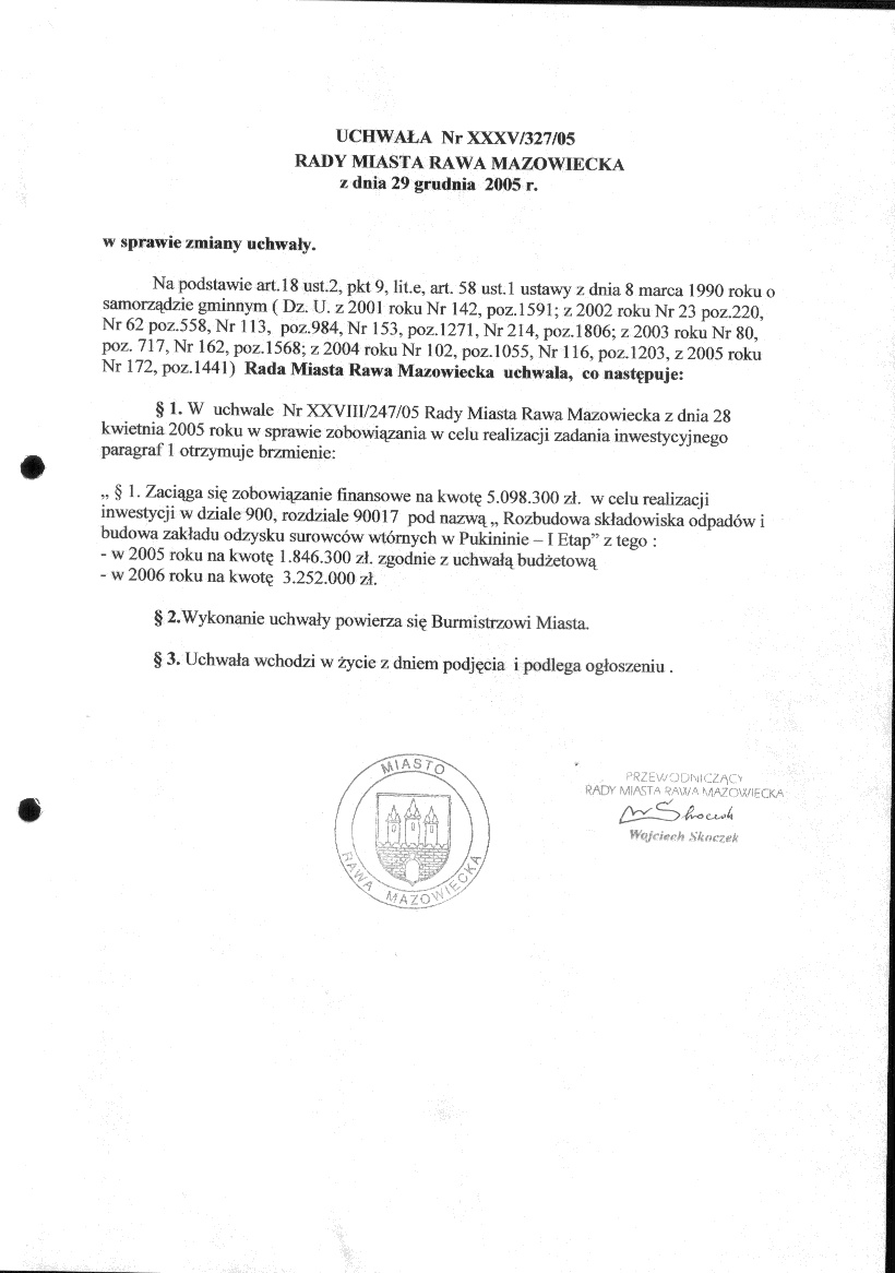 UCHWAŁA NR XXXV/324/05 z dnia 29 grudnia 2005r. w sprawie przyjęcia Strategii Rozwoju Miasta Rawa Mazowiecka
