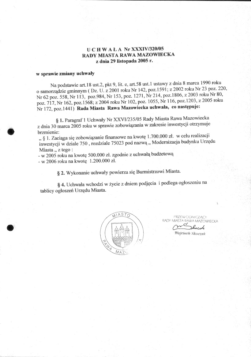 UCHWAŁA NR XXXIV/320/05 z dnia 29 listopada 2005r. w sprawie zmiany uchwały