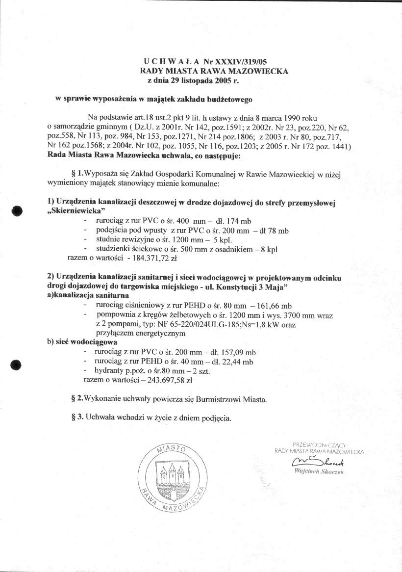 UCHWAŁA NR XXXIV/319/05 z dnia 29 listopada 2005r. w sprawie wyposażenia w majątek zakładu budżetowego