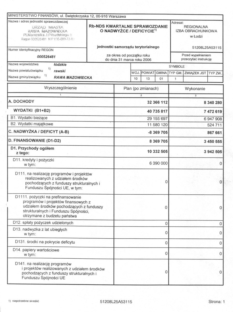 SPRAWOZDANIE NDS ZA I KWARTAŁ 2006 ROK