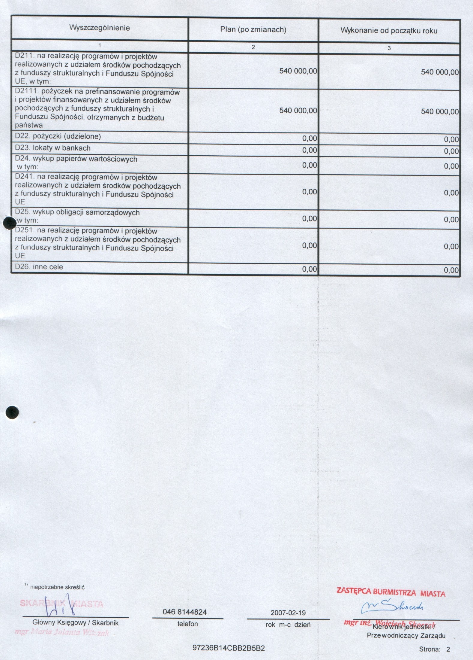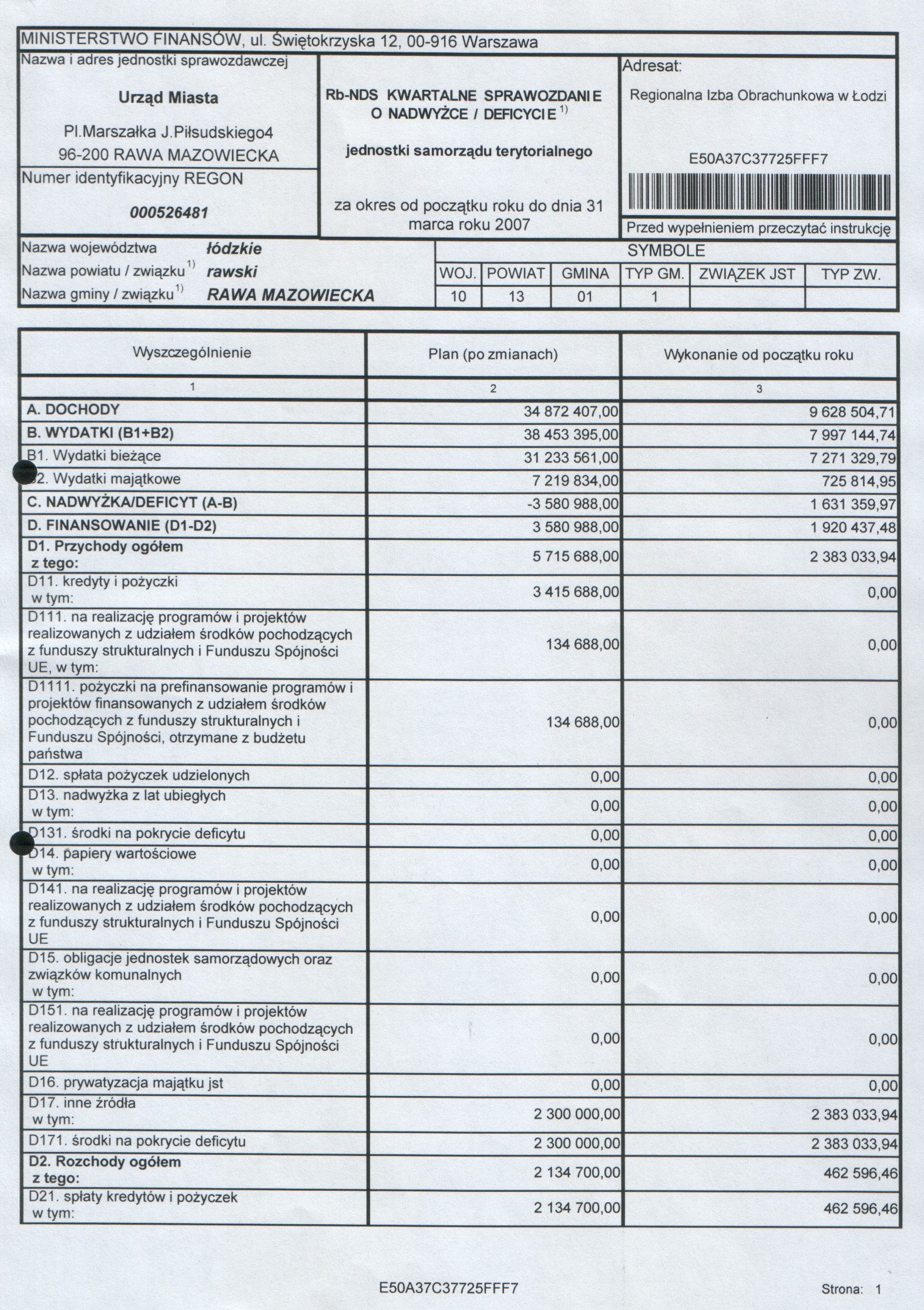 Informacje za 2007 rok z art. 14 pkt 2 ustawy o finansach publicznych