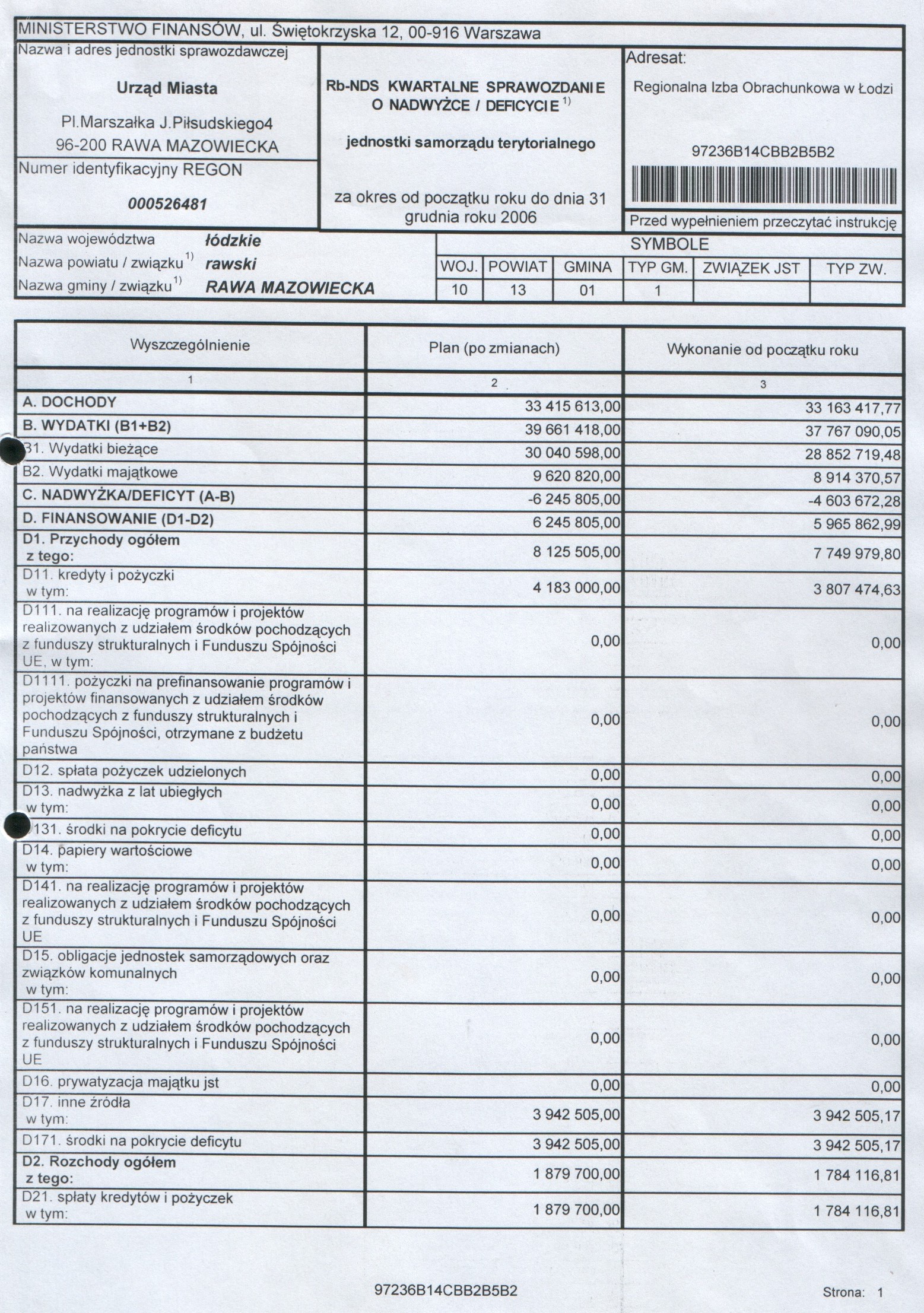 Informacja z wykonania budżetu Miasta Rawa Mazowiecka za II kwartał 2019 roku oraz o udzielonych umorzeniach niepodatkowych należności budżetowych.