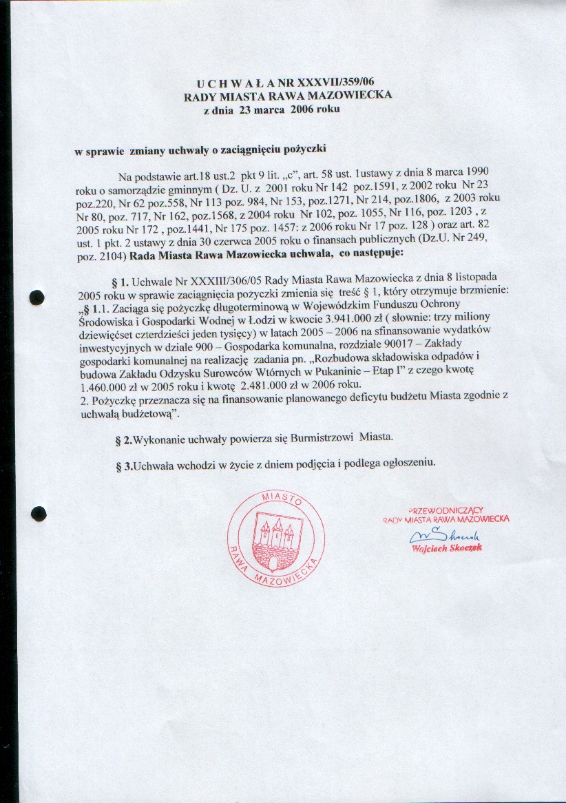 UCHWAŁA NR XXXVII/359/06 z dnia 23 marca 2006 r. w sprawie zmiany uchwały o zaciągniecie pożyczki