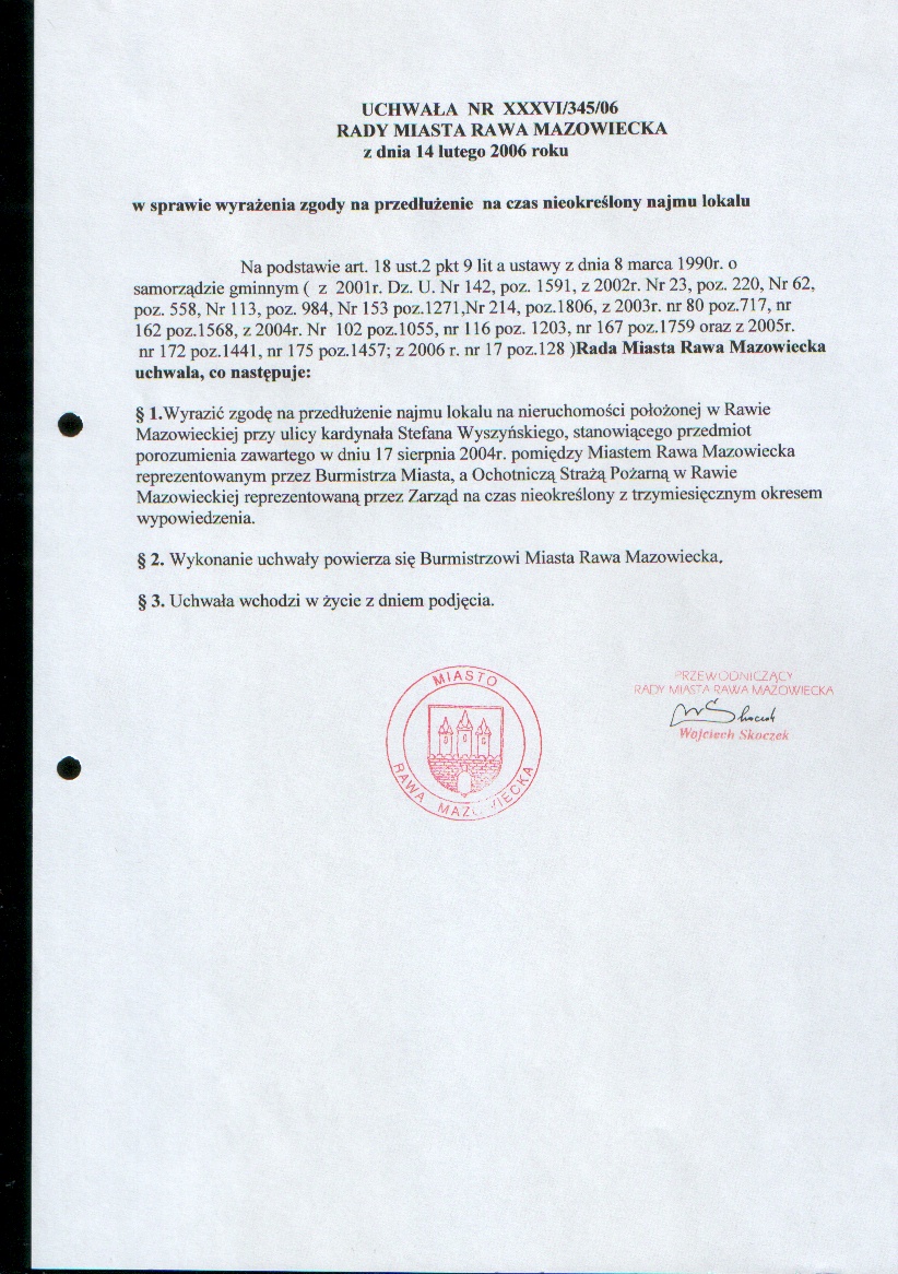 UCHWAŁA NR XXXVI/345/06 z dnia 14 lutego 2006 r. w sprawie wyrażenia zgody na przedłużenie na czas nieokreślony najmu lokalu