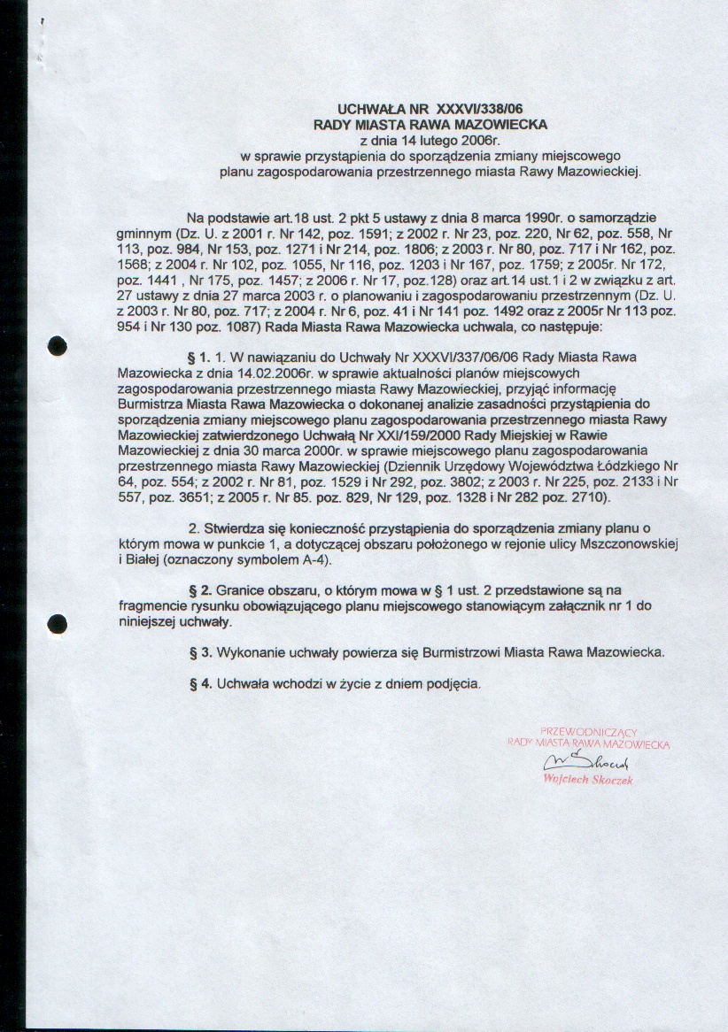 UCHWAŁA NR XXXVI/338/06 z dnia 14 lutego 2006 r. w sprawie przystapienia do sporządzenia zmiany miejscowego planu zagospodarowania przestrzennego miasta Rawy Mazowieckiej