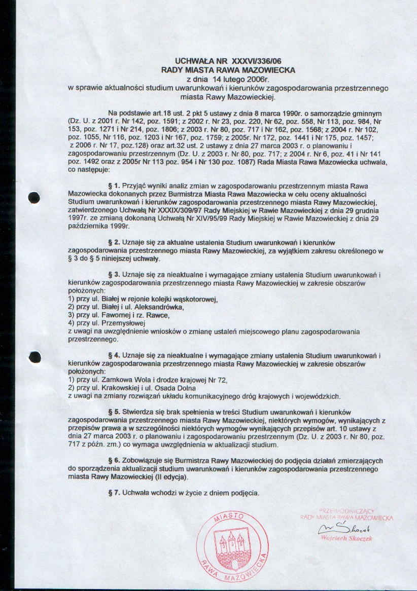 UCHWAŁA NR XXXVI/336/06 z dnia 14 lutego 2006 r. w sprawie aktualności stadium uwarunkowań zagospodarowania przestrzennego miasta Rawy Mazowieckiej