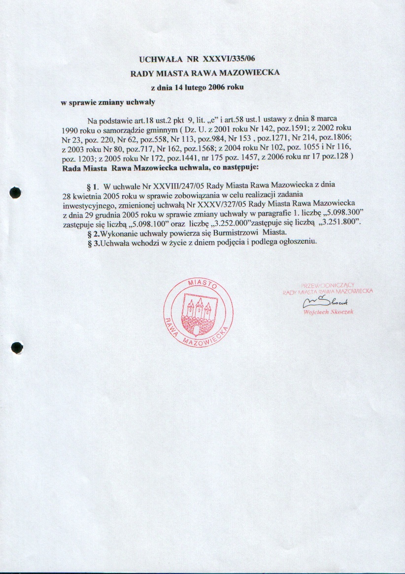 UCHWAŁA NR XXXVII/362/06 z dnia 23 marca 2006 r.zmieniająca uchwałę w sprawie uchwalenia wieloletniego planu inwestycyjnego Miasta Rawa Mazowiecka na lata 2005-2007
