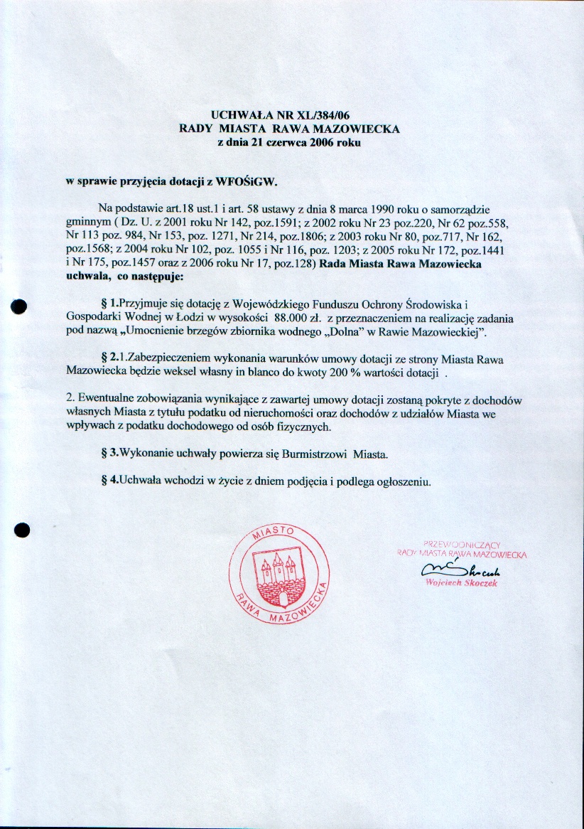 UCHWAŁA NR XL/384/06 z dnia 21 czerwca 2006 r. w sprawie przyjęcia dotacji z WFOŚiGW