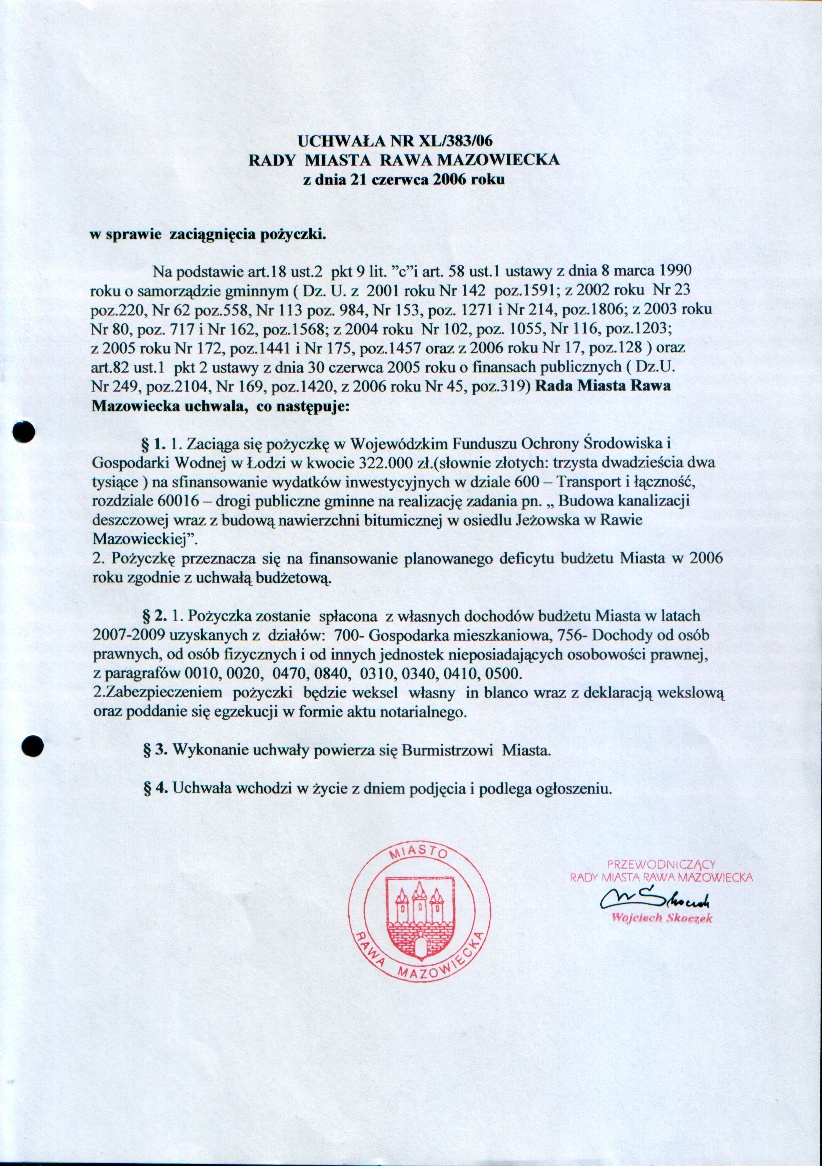 UCHWAŁA NR XL/383/06 z dnia 21 czerwca 2006 r. w sprawie zaciągnięcia pożyczki