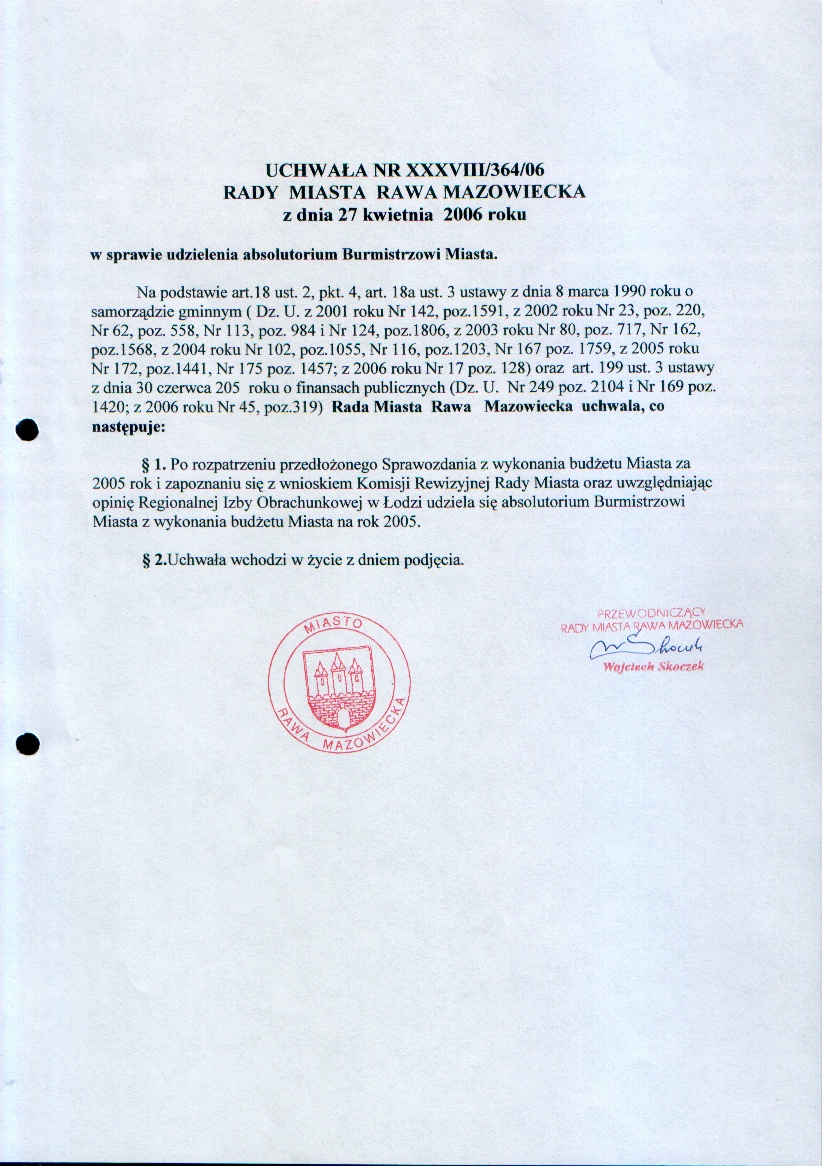 UCHWAŁA NR XXXVIII/363/06 z dnia 27 kwietnia 2006 r. w sprawie przyjęcia sprawozdania z wykonania budżetu Miasta za 2005 rok